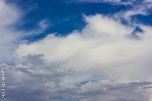 © kaentian, Obraz premium Fluffy white clouds and blue sky.