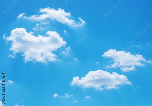 © petokpetok, Fototapeta premium Fluffy White Clouds Floating in a Clear Blue Sky