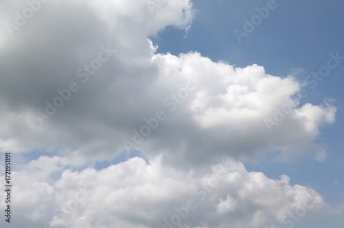 © MstEva, Fototapeta premium Fluffy white clouds in a bright blue sky during daytime