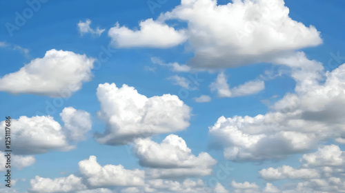 Fototapeta premium Fluffy white cumulus clouds against a vivid blue sky. Great for backgrounds or nature-related designs.