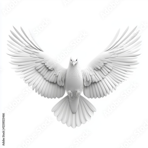 Obraz premium Fluffy white dove with outstretched wings in flight, isolated on a clean white background