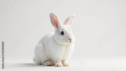 © huaomanz, Fototapeta premium Fluffy White Lop-Eared Rabbit Sitting Calmly, Nose Twitching Slightly, Isolated White