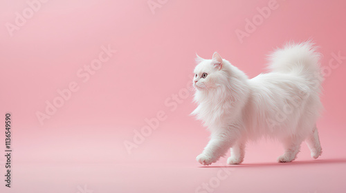 © Khatthaphone, Fototapeta premium Fluffy White Persian Cat in a Commercial Setting