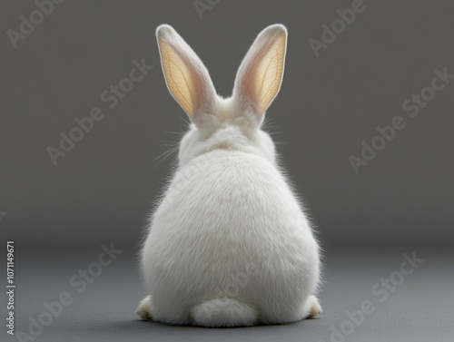 © Alexander Chaykin, Obraz premium Fluffy White Rabbit on Gray Surface