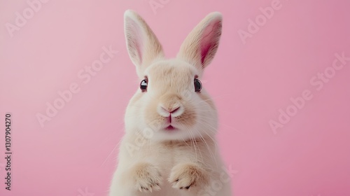 Obraz premium Fluffy White Rabbit on Pink Background / ピンクの背景のふわふわした白いウサギ