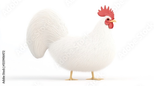 © DIAHIMAGESNEW, Fototapeta premium Fluffy White Rooster Cartoon Illustration