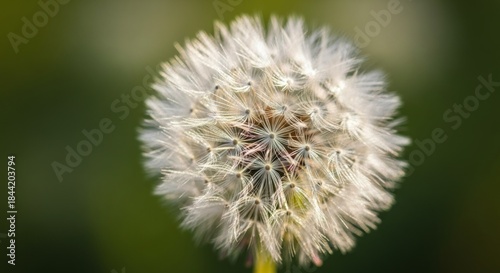 © crewart, Fototapeta premium Fluffy white seed head of a mature plant glows softly against a dark green backdrop