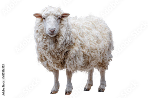 © aldy, Fototapeta premium Fluffy white sheep, full-body shot, centered on black background