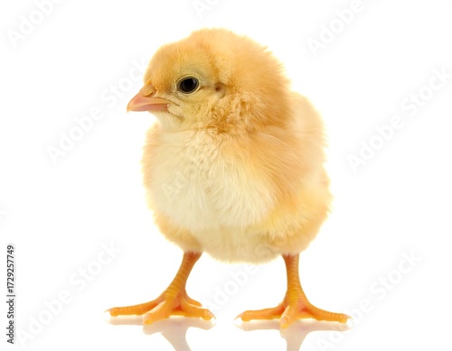© karambol, Fototapeta premium Fluffy yellow chick, profile view