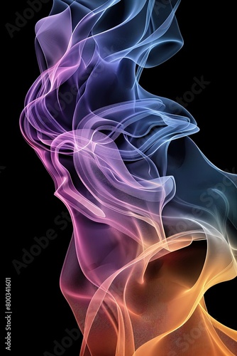 © ChickyKai, Obraz premium Fluid Curve Abstract: 3D Line Poster on Black Background with Soft Colors, Gradient Backdrop - High Resolution Commercial Illustration