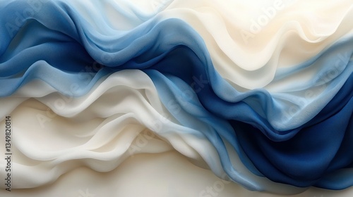 © Lemdah, Obraz premium Fluid, flowing fabrics in soft blue and cream