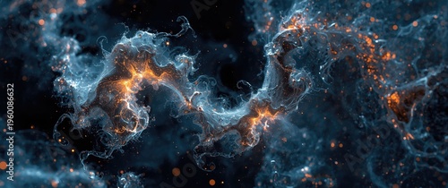 © vxnaghiyev, Obraz premium Fluid fractal shape radiating electric particles in a futuristic science theme