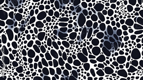 © novi syahdah, Obraz premium Fluid interconnected monochrome pattern with dynamic organic shapes design