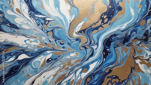 Obraz premium Fluid, marbled artwork in blue and yellow colors, ideal for wallpapers,...