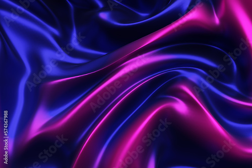 © Olga, Fototapeta premium Fluid metal curve shape. Purple blue smooth liquid waves. 3d rendering