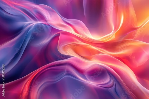 © Graphi Fusion, Obraz premium Fluid Motion of Scarlet Silk in Graceful Wave Patterns. Abstract Background