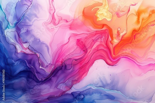 © ItziesDesign, Fototapeta premium Fluid movement of neon watercolors in an abstract background