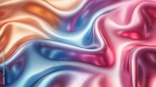 Obraz premium Fluid rainbow texture with shiny metallic sheen flowing smoothly in gentle...