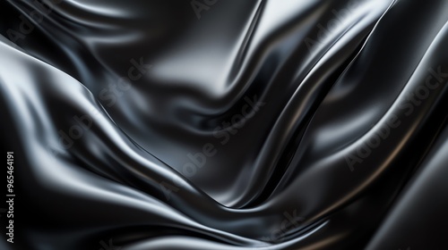 Obraz premium Fluid silver waves flowing across a matte black background, creating an...