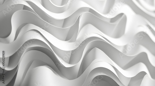 © Mr image, Obraz premium 20. Fluid, undulating paper shapes arranged in a rhythmic, flowing 3D pattern