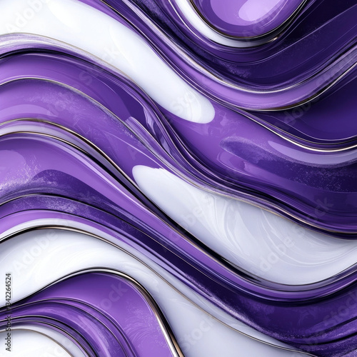Fototapeta premium Fluid wavy abstract background with flowing purple and white glossy layers for modern digital art design luxury wallpaper and elegant texture pattern
