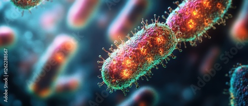 © Sarocha, Fototapeta premium Fluorescent Imaging of Bacteria Colonies Under Microcope
