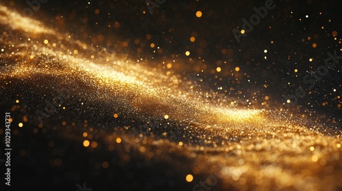 Obraz premium Flurry of golden glitters shimmering in the black space, resembling a...