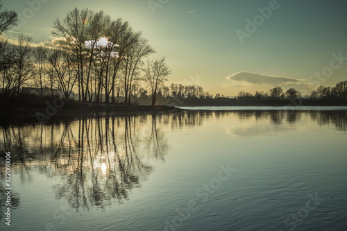 © Richard Kleu, Fototapeta premium Flussmündung der Sieg in den Rhein bei Bonn