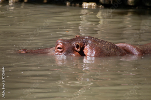 Obraz premium Flusspferd (Hippopotamus amphibius) im Wasser