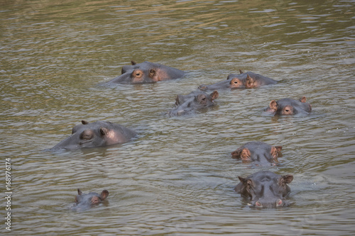 © aussieanouk, Fototapeta premium Flusspferde im Fluss