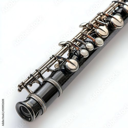 Naklejka premium Flute Music Instrument: Classical Woodwind Performance Close-Up - Elegant Metallic Design and Orchestral Harmony in Jazz & Symphony Concerts