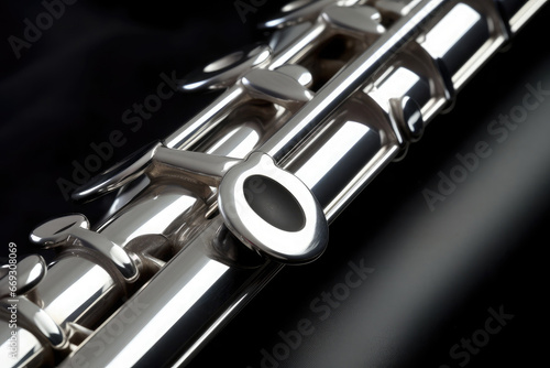 © CostantediHubble, Naklejka premium Flute on a black background: detail of the keys.