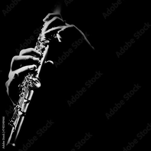 © Alenavlad, Fototapeta premium Flutist hands playing flute music instrument