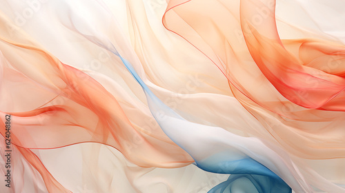 © Isaac, Obraz premium fluttering transparent wavy scarf texture. Modified Generative Ai Image.