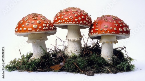 Obraz premium Fly agaric mushrooms Amanita microdosing involves using dried mushrooms in extremely small amounts for potential effects