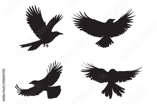 © MeharUn, Obraz premium Fly birds silhouette set vector illustration