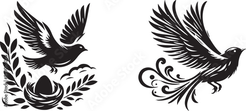 © loveley0190, Obraz premium fly birds silhouette vector art illustration
