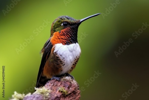 © Владимир , Fototapeta premium Fly detail, moving wings. White-bellied Woodstar, hummingbird with clear green background. Bird from Tandayapa, Ecuador. Flying hummingbird in tropical forest.