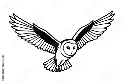 © Prosenjit, Fototapeta premium Fly line art cute Owl Bird silhouette vector graphic clipart.