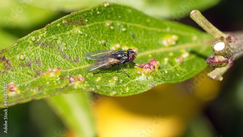 © Angela, Naklejka premium Fly on a diseased leaf in Cotacachi, Ecuador