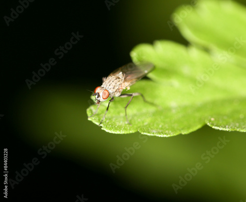 © schankz, Naklejka premium fly on a green leaf. close