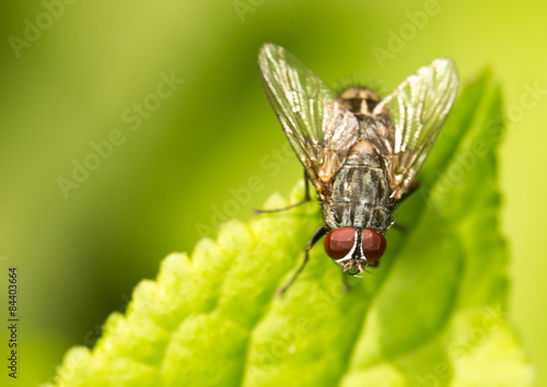 © schankz, Naklejka premium fly on a green leaf. close