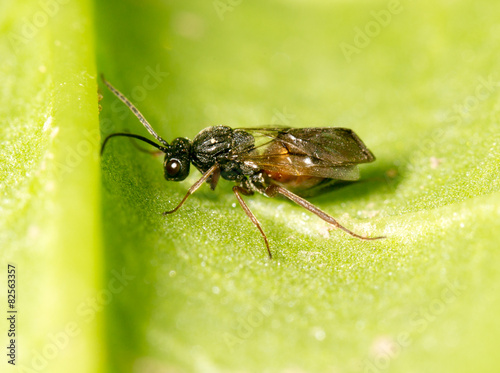 © schankz, Naklejka premium fly on a green leaf in nature. close-up