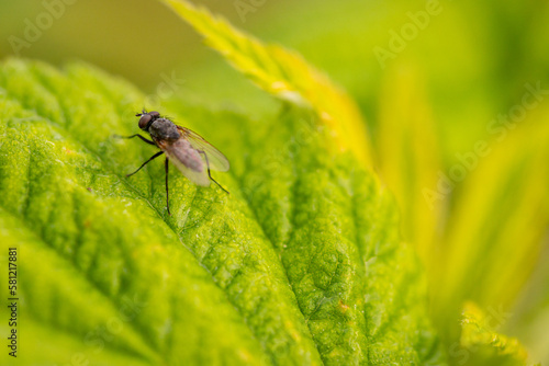 © Neils, Fototapeta premium fly on green leaf in the wild.