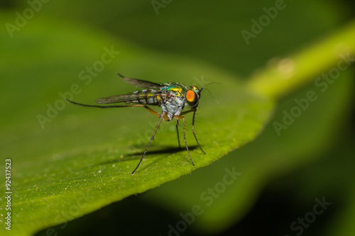 Fototapeta premium fly on green leaf,Macro view