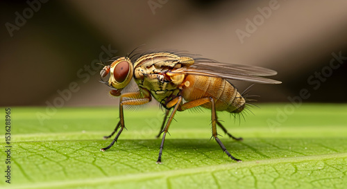 © Sugiri80, Obraz premium Fly on Leaf Macro Photo