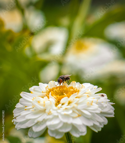 Obraz premium Fly on white mum, nature background