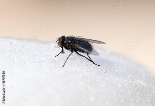 Obraz premium Fly on white sweet cotton wool.