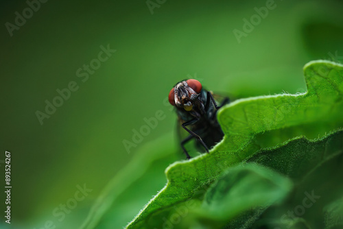 © Rodney, Naklejka premium Fly overlooking from edge of leaf