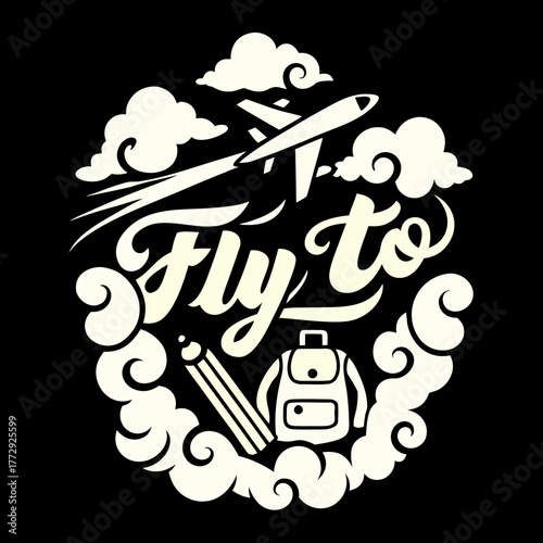 Fototapeta premium Fly to vector design with plane